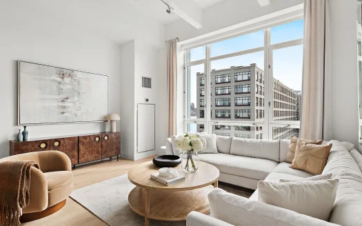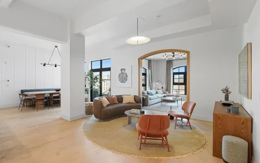 Bu geniş 228 m², üç yatak odalı + den, 3.5 banyolu konut, Hoboken'ın endüstriyel geçmişini ...