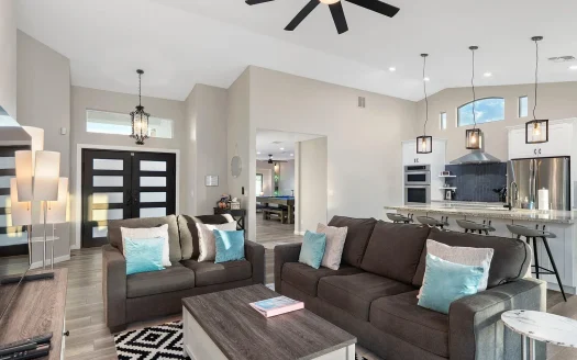Bu muhteşem ev, modern ve şık tasarımıyla dikkat çekiyor. Açık plan oturma odası ve geniş ...